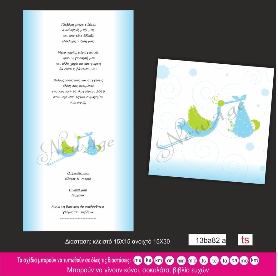 Προσκλητήριο Βάπτισης   πελαργός αγόρι    13ba82a ts