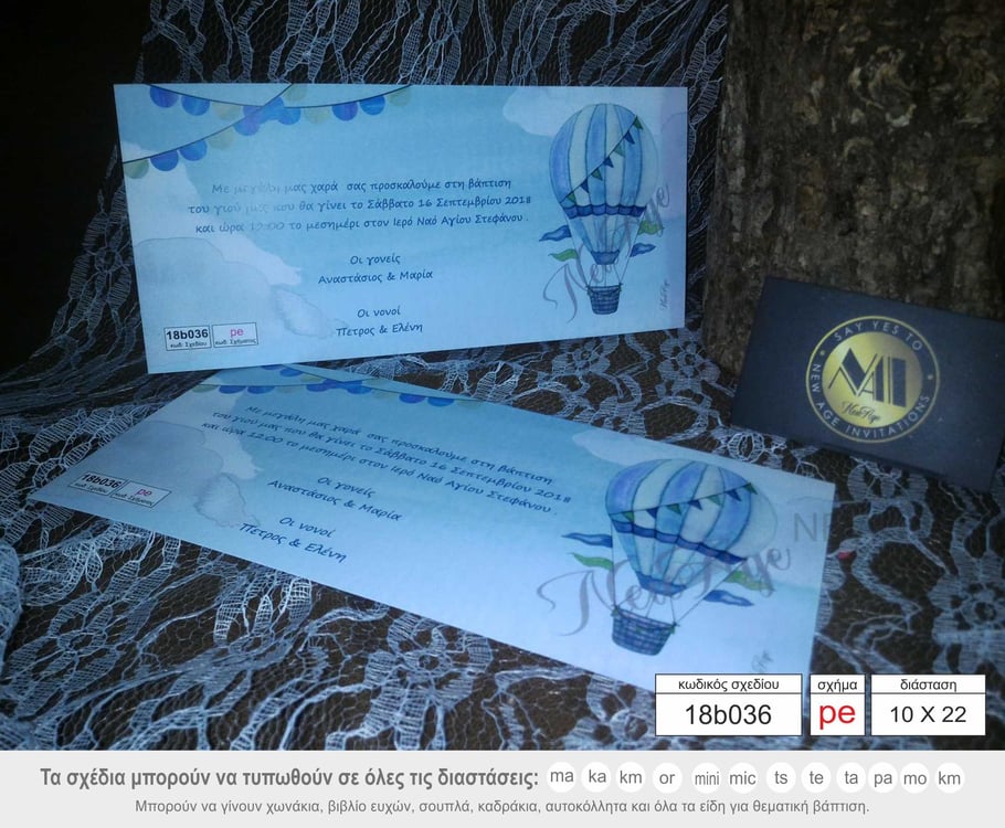 Προσκλητήριο βάπτιση αερόστατο και σύννεφα.