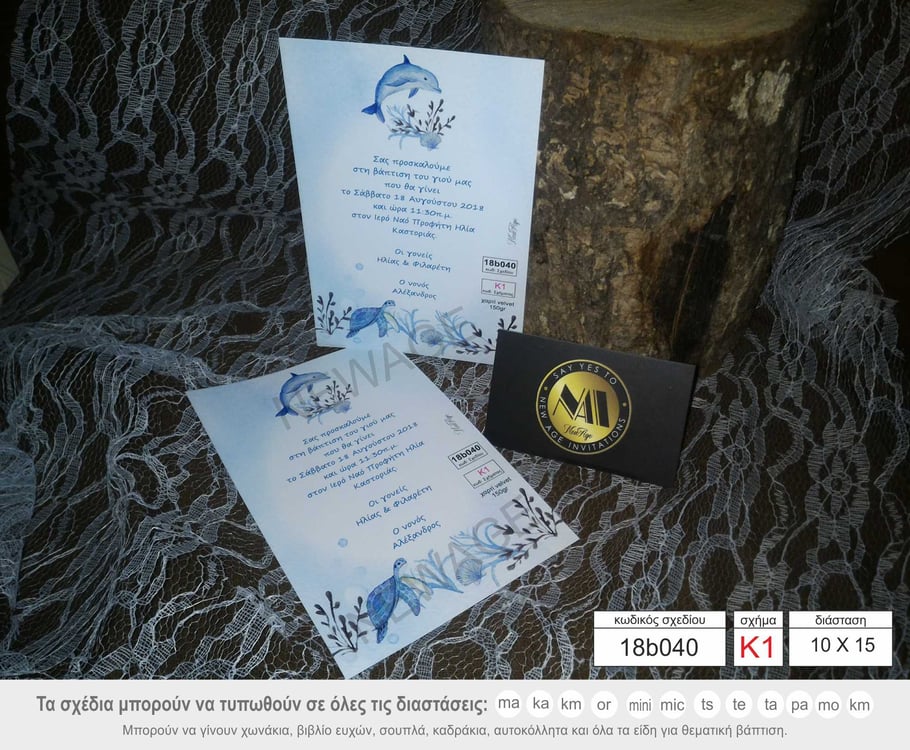 Προσκλητήριο βάπτισης δελφίνι  18b040 Κ1
