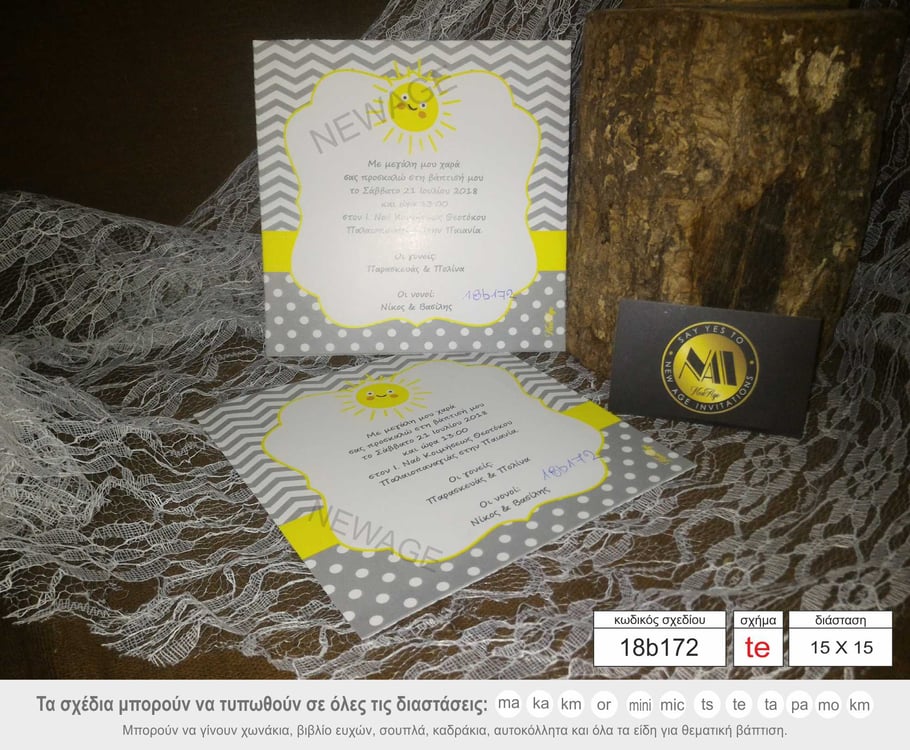 Προσκλητήριο βάπτισης ήλιος με πουά & ζικ-ζακ σχέδια.