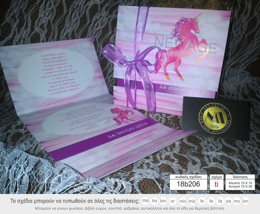Προσκλητήριο βάπτιση μονόκερος φουξ - ροζ.