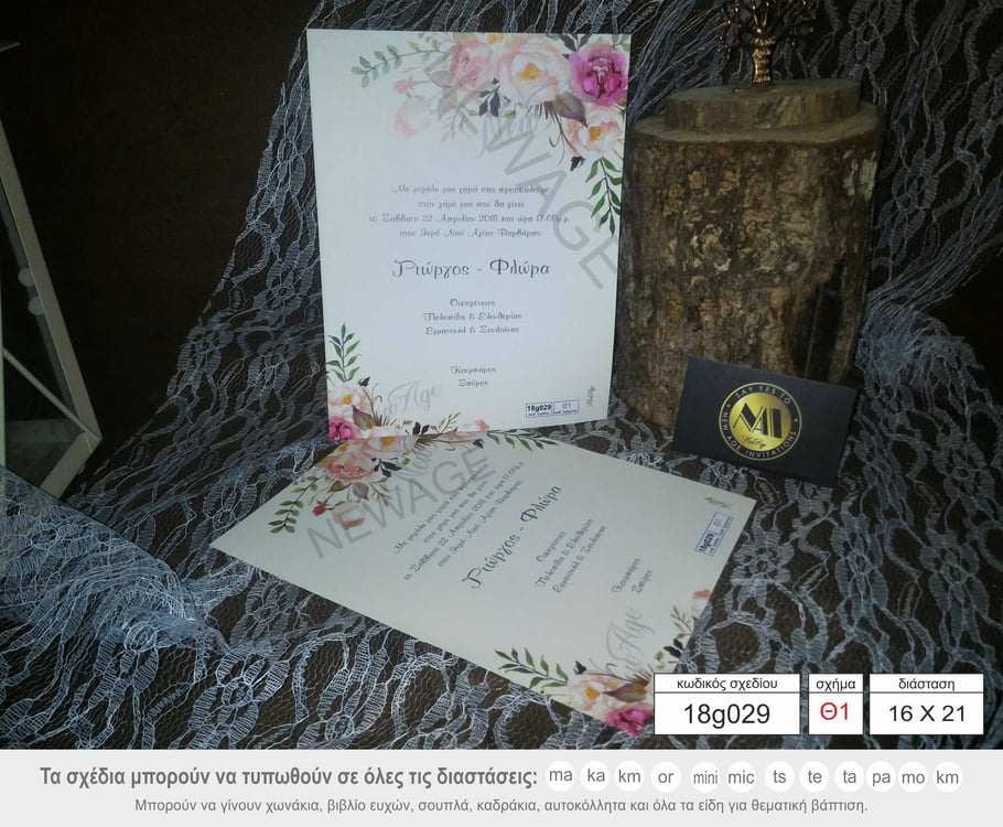 Προσκλητήριο γάμου με λουλούδια 18g029 Θ1