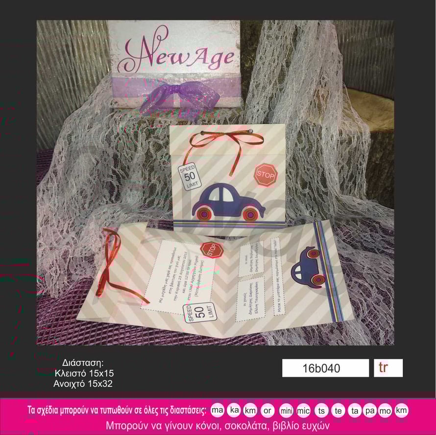 Προσκλητήριο βάπτισης με αμάξι και σήματα οδήγησης .