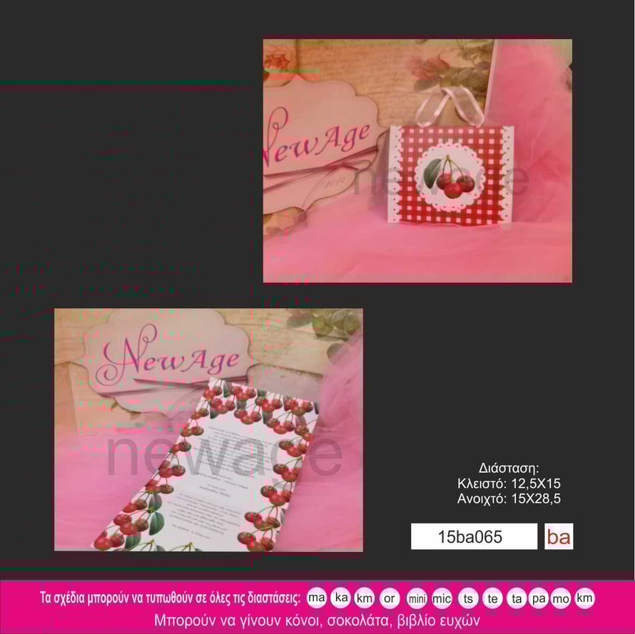 Προσκλητήριο βάπτισης με κερασάκια σε καρό φόντο.
