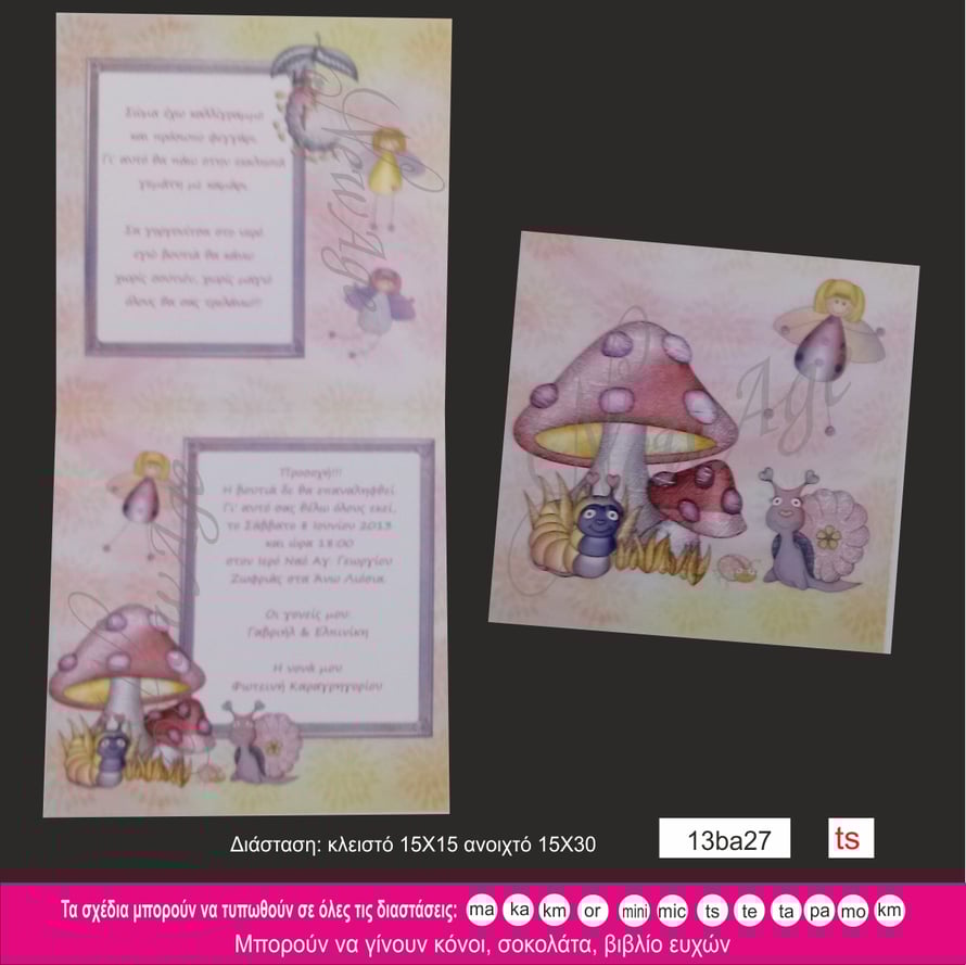 Προσκλητήριο βάπτισης με σαλιγκάρι και μανιτάρια.