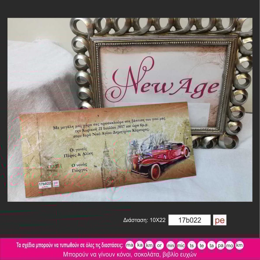 Προσκλητήριο βάπτισης με vintage αμάξι.