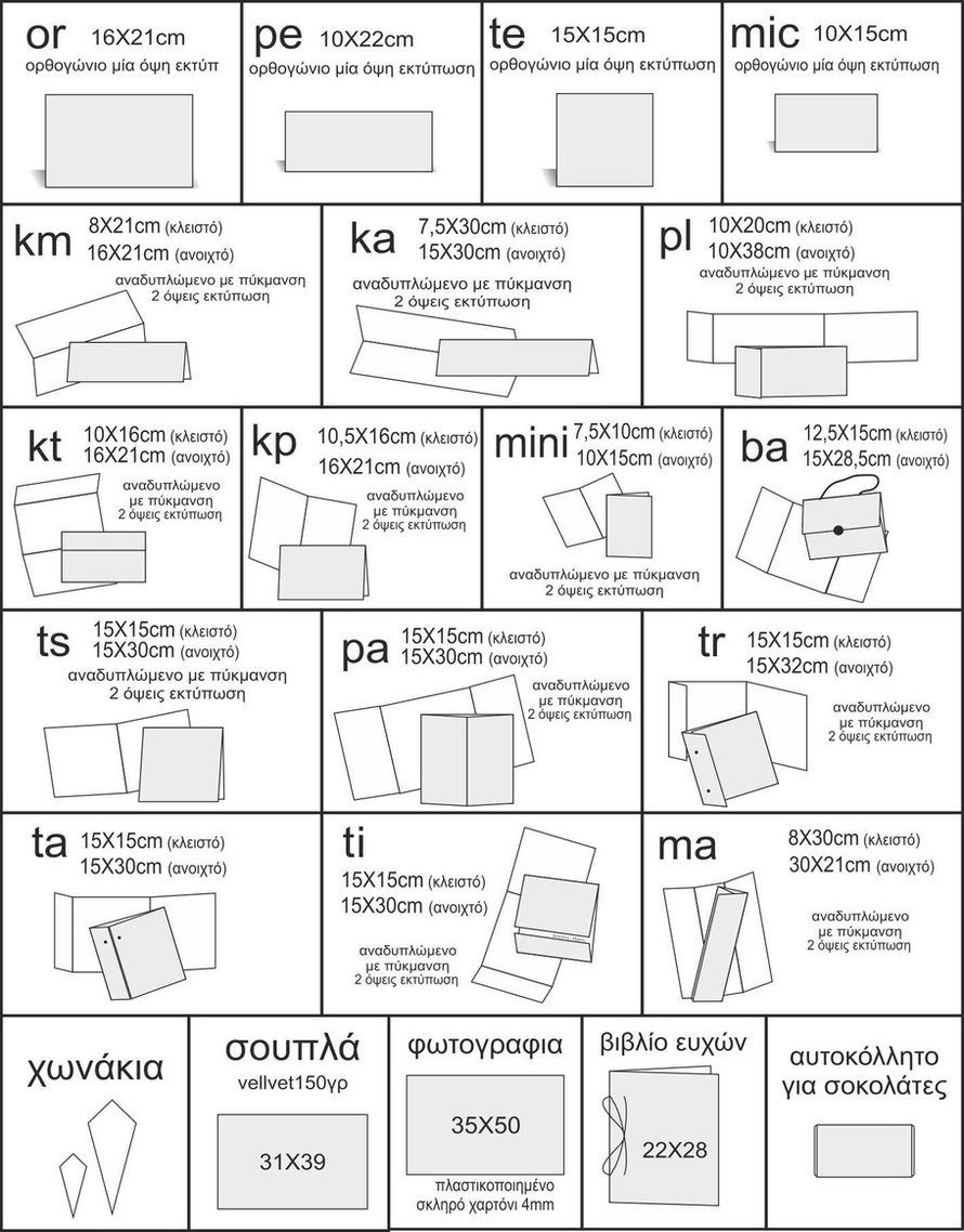 Το προσκλητήριο μπορεί να κλείσει με αυτοκόλλητο, κορδέλα ή φάκελο.