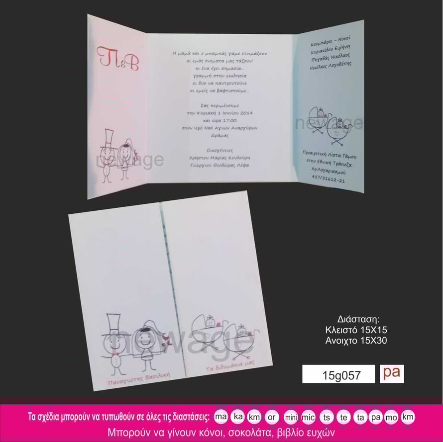Προσκλητήριο γάμου και βάφτισης με δίδυμα μωράκια.