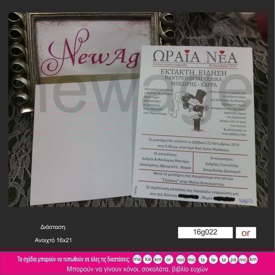 Προσκλητήριο γάμου εφημερίδα "Ωραία Νέα" μια όψει με ζευγάρι .