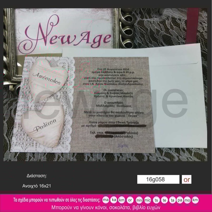 Προσκλητήριο γάμου Newage 16g058 or.