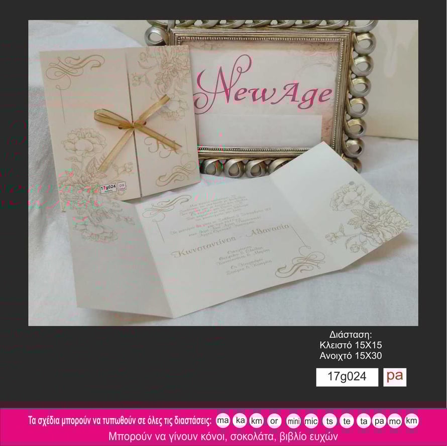 Το προσκλητήριο μπορεί να κλείσει με αυτοκόλλητο, κορδέλα ή φάκελο.